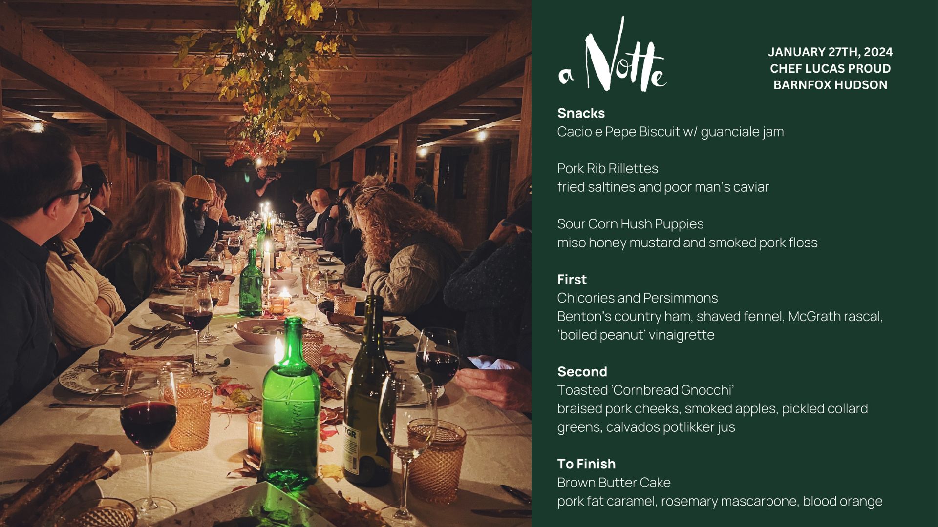 Join us for an exclusive evening of delightful flavors created by one of our favorite’s, Chef Lucas Proud. We are only setting the table one night so snag your tickets early to make sure you get a seat. Lucas has put together a menu to showcase the whole hog and honor the farmers that raised it. We will be setting the table at a new (to us) venue in Hudson, NY. Barnfox is a beautiful co-working space that has graciously offered to host us in these cold wintry months. Come at 6 for a cocktail and some seriously delicious snacks and then get seated together for a 3 course family style feast.