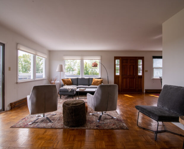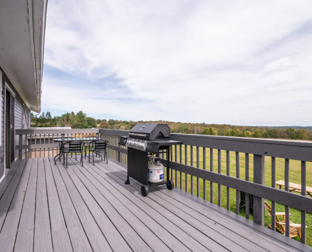 Outdoor space – the house sits quietly on the top of Shandelee Mountain with sweeping views out your backyard. There is a private wrap around deck so everyone can enjoy the outdoors! Sit around the fire with your partner or friends and enjoy the peacefulness of the property.