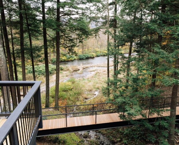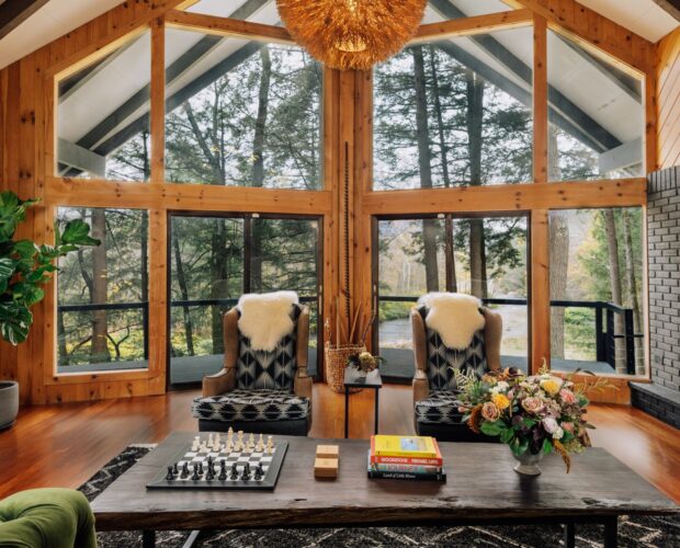 Nestled within Catskill Park, Stonewater Pines is a distinctive luxury rental which encapsulates the pristine natural beauty of the Western Catskills. The property offers stunning views and over 1,000 feet of frontage on the world famous Beaverkill River, providing guests with a nature immersive experience not typically expected only two hours from NYC. The space blends uniquely curated decor with modern amenities, offering guests an upscale yet comfortable stay, and a different vantage point of the property’s incredible natural surroundings.